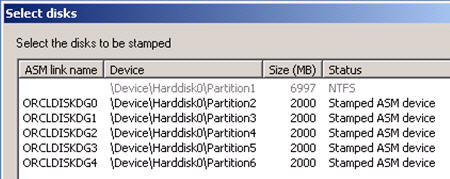 Nadat de Oracle software is geïnstalleerd, is het noodzakelijk om de aangemaakte logical drive te gaan brandmerken als ASM Filegroups. Hiervoor levert Oracle de tool asmtoolg.exe: